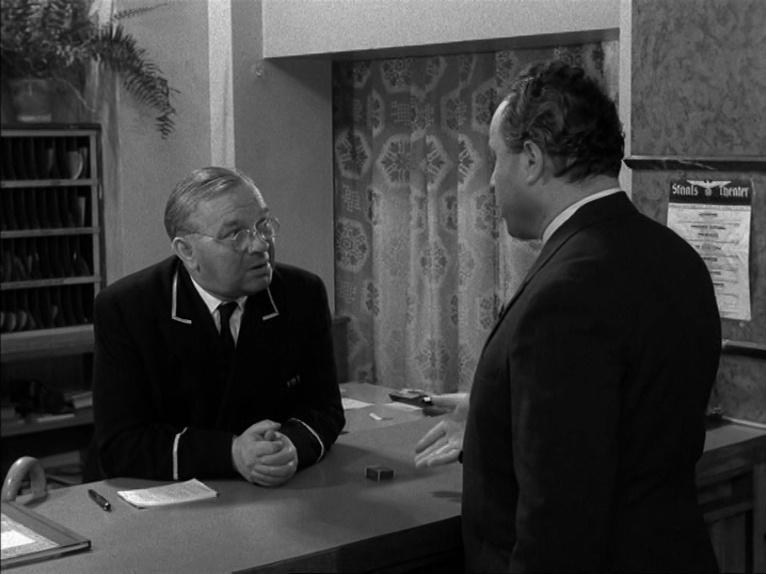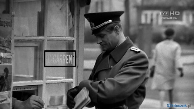 „Hotel Excelsior” Poczciwy portier Fryderyk także zaliczał się do znawców repertuaru Staatstheater, o którym już co nieco pisaliśmy (tu afisz już bez ujednoznacznienia „Generalgouvernements”, zamazanego podobnie jak w Berlinie w „Zdradzie”). ![]() W ogóle ta recepcja hotelu Excelsior to ciekawe miejsce. Broszura wetknięta pod aparat telefoniczny i pudełko zapałek najpierw potrafiły leżeć tam na ladzie kilka dni w tym samym miejscu, by błyskawicznie zniknąć między zameldowaniem się Ingrid Heizer a rozmową telefoniczną przesadnie odegraną przez Lemnera… ![]() … a wystrój musiały wzbogacić nieśmiertelne paprotki, w przeciwnym razie w lustrze nad przegródkami z kluczami za bardzo odbijałby się mikrofon (którego ruch i tak jest bardzo widoczny w tym krótkim ujęciu). ------ Ba! Gdybym ja był niedyskretny… |