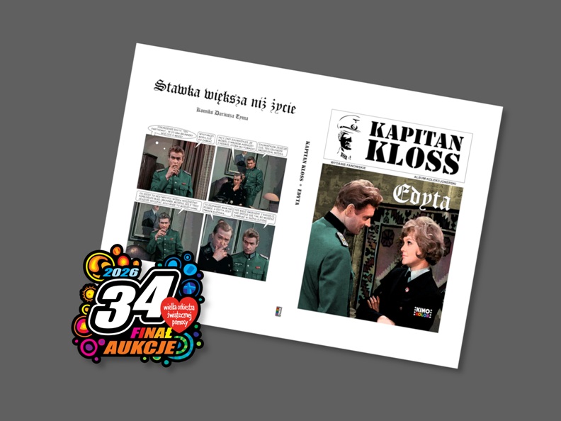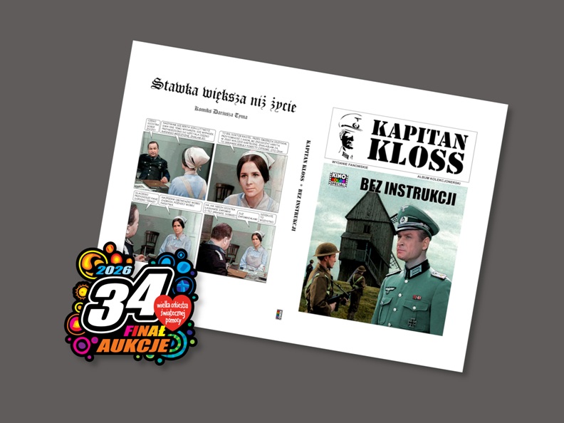 Sympatyków „Stawki większej niż życie” zapraszamy do wzięcia udziału w aukcjach charytatywnych na rzecz Wielkiej Orkiestry Świątecznej Pomocy. Wylicytować można: – fanart komiksowy autorstwa Dariusza Tyma „Bez instrukcji” w wersji deluxe (licytuj), ![]() – fanart komiksowy autorstwa Dariusza Tyma „Edyta” w wersji deluxe (licytuj), ![]() – przewodnik Bogdana Bernackiego „Śladami Klossa po Wrocławiu” z dedykacją autora dla zwycięzcy aukcji (licytuj). ![]() Aukcje zakończą się 26 stycznia 2026 roku po godz. 23.00. Po zakończeniu ubiegłorocznych aukcji z akcentami stawkowymi na konto Wielkiej Orkiestry Świątecznej Pomocy przekazano 145,58 zł: – licytację książki „Stawka większa niż życie. Dossier” wygrała użytkowniczka posługująca się nickiem jhbsk, który zaoferowała 85,58 zł, – licytację książki „Stawkowy przewodnik filmowy” wygrała użytkowniczka posługująca się nickiem Jolka46_2004, która zaoferowała 33,00 zł, – licytację książki „Śladami Klossa po Wrocławiu” z dedykacją autora wygrał użytkownik posługujący się nickiem krzysieksarna, który zaoferował 27,00 zł. ------ „Piąstkę to ty masz nie najgorszą, Hans…” |