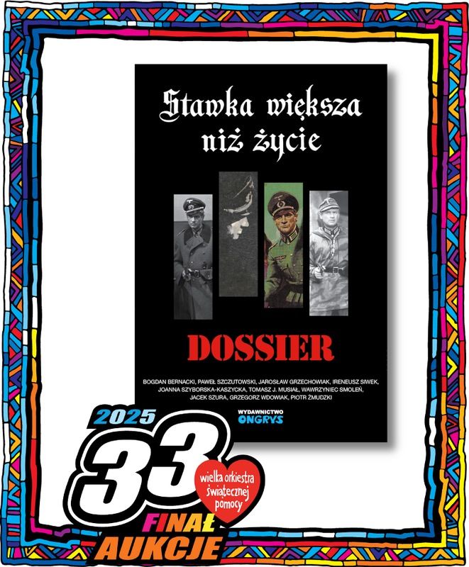 Sympatyków „Stawki większej niż życie” zapraszamy do wzięcia udziału w aukcjach charytatywnych na rzecz Wielkiej Orkiestry Świątecznej Pomocy. Wylicytować można: – książkę „Stawka większa niż życie. Dossier” (licytuj), ![]() – książkę „Stawkowy przewodnik filmowy” (licytuj), ![]() – książkę Bogdana Bernackiego „Śladami Klossa po Wrocławiu” z dedykacją autora dla zwycięzcy aukcji (licytuj). ![]() Aukcje zakończą się 24 stycznia 2025 roku w godz. 22.33–22.53. Po zakończeniu ubiegłorocznych aukcji z akcentami stawkowymi na konto Wielkiej Orkiestry Świątecznej Pomocy przekazano 135,50 zł: – licytację książki „Stawka większa niż życie. Dossier” wygrał użytkownik posługujący się nickiem oliwka8, który zaoferował 81,50 zł, – licytację książki „Śladami Klossa po Wrocławiu” z dedykacją autora wygrał użytkownik posługujący się nickiem Male_Stworzonko, który zaoferował 34,00 zł, – licytację książki „Stawkowy przewodnik filmowy” wygrała użytkowniczka posługująca się nickiem jhbsk, która zaoferowała 20,00 zł. ------ „Piąstkę to ty masz nie najgorszą, Hans…” |